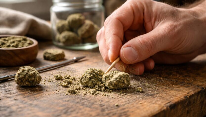 - Pilon et mortier : Cette méthode permet de réduire la moon rock en une pâte fine tout en préservant certains trichomes. Le pilon aide à garder intacts les cannabinoïdes.